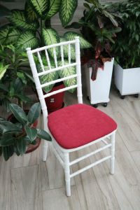 Американська класика. Використовується на всіх прийомах в Білому домі. 95% весіль і заходів в Америці використовують саме стілець Chiavari. Завдяки витонченій, ажурній спинці,  стілець легко впишеться і доповнить будь-який стиль декорацій вашого заходу. Тверда основа, приховане кріплення, м'який, високий, зручний поролон подушки забезпечують максимальну зручність для гостей на вашому банкеті не псуючи інтер'єр бантиками і зайвими деталями. Завдяки кольоровій палітрі наших чохлів для подушок і скатертин ви зможете підкреслити індивідуальність вашого свята.