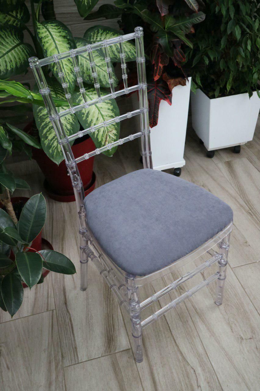 Ви хочете зробити дизайн вашого свята легким і повітряним, або ваше свято в стилі «замку Снігової Королеви» - доповнити дизайн Вам допоможуть наші прозорі стільці Chiavari. Використовуючи ці стільці у весільній церемонії, Ви зможете відчути політ ваших почуттів і, наче,  «перенести» вашу весільну церемонію на небеса. Поєднавши ці стільці з білими квітами, отримаєте відчуття, ніби самі небеса вінчають ваш шлюб. Тверда основа, приховане кріплення, м'який, високий, зручний поролон подушки забезпечують максимальну зручність для гостей на вашому банкеті не псуючи інтер'єр бантиками і зайвими деталями. Завдяки кольоровій палітрі наших чохлів для подушок і скатертин ви зможете підкреслити індивідуальність вашого свята.