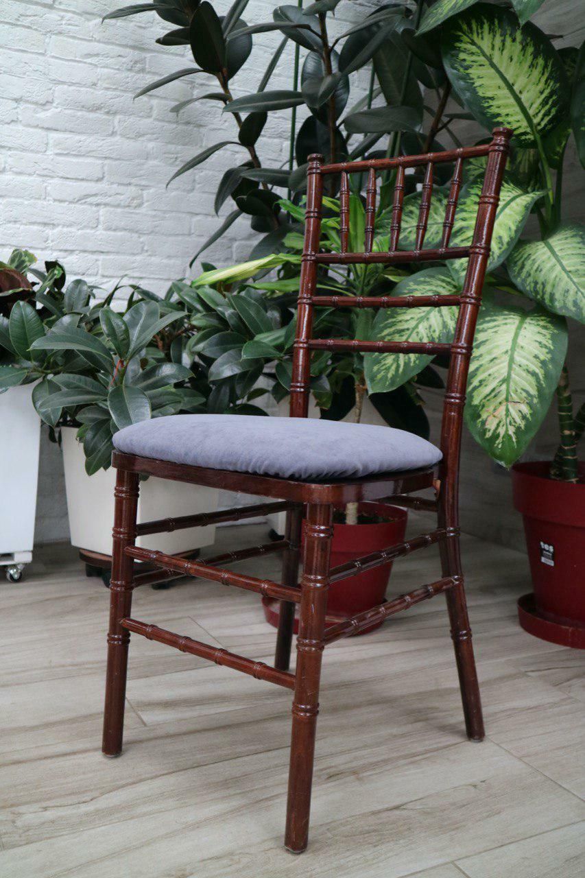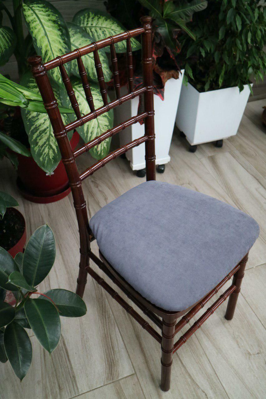 Вам дуже подобається легендарний, витончений, стриманий стілець Chiavari, але стиль вашого свята «Кантрі», «Еко», «Шале» - вам підійдуть наші стільці кольору Венге. Легкий силует цього стільця допоможе підкреслити урочистість заходу. Використовуючи ці стільці з нашими столами Венге без скатертини, ви легко зможете перенестися в чарівний світ природи. Тверда основа, приховане кріплення, м'який, високий, зручний поролон подушки забезпечують максимальну зручність для гостей на вашому банкеті не псуючи інтер'єр бантиками і зайвими деталями. Завдяки кольоровій палітрі наших чохлів для подушок і скатертин ви зможете підкреслити індивідуальність вашого свята.