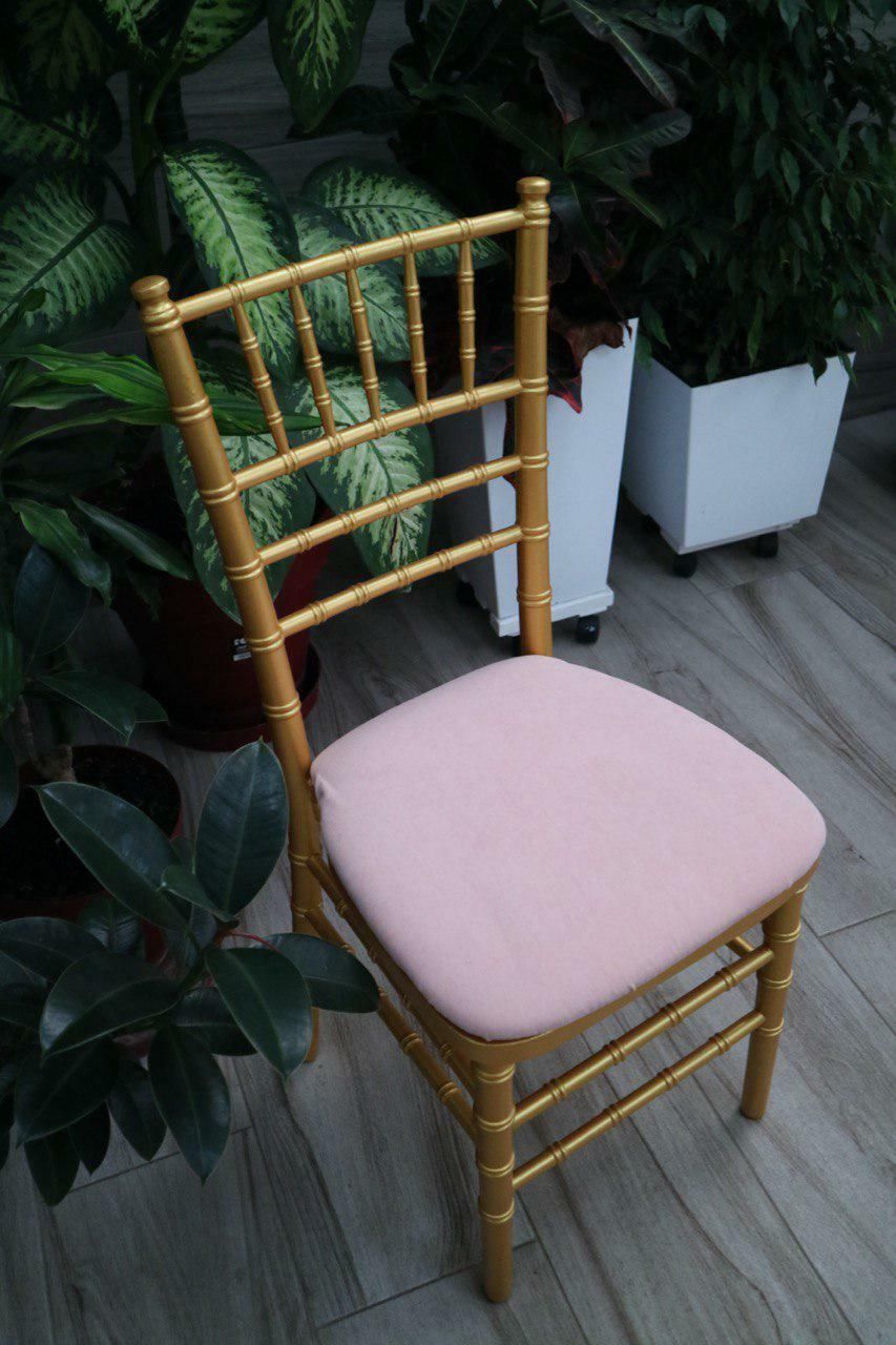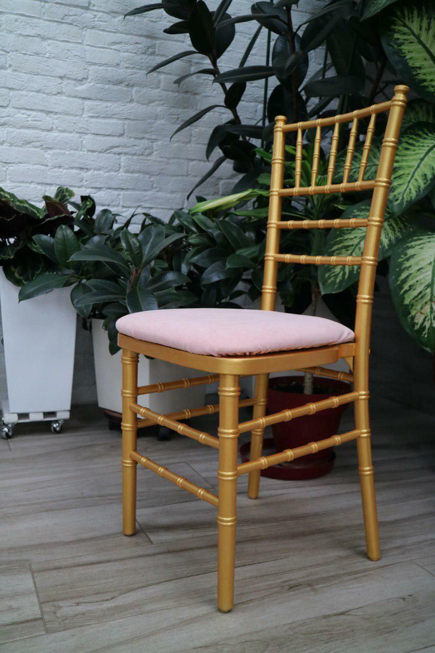 Вам хочеться відчути атмосферу банкетів в палацах в 17-18 століттях, підвищити статус свята, відчути себе царственими особами - вам легко допоможуть в цьому наші стільці Chiavari кольору золота. Благородне золото в поєднанні з ніжним оксамитом сидінь нагадує невеликий трон, що підкреслює розкіш, помпезність і святковість будь-якого заходу. Тверда основа, приховане кріплення, м'який, високий, зручний поролон подушки забезпечують максимальну зручність для гостей на вашому банкеті не псуючи інтер'єр бантиками і зайвими деталями. Завдяки кольоровій палітрі наших чохлів для подушок і скатертин ви зможете підкреслити індивідуальність вашого свята.